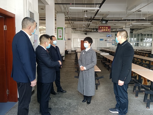在苍溪天立中学,刘素英一行实地察看了学校防疫工作开展和学生就餐环境情况,听取了学校防疫常态化工作和食品安全工作情况汇报。