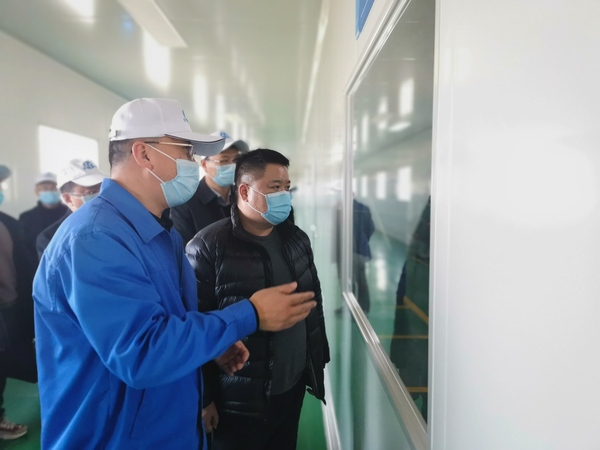 图为,任云在烟台市牟平区山东中锐产业公司考察。