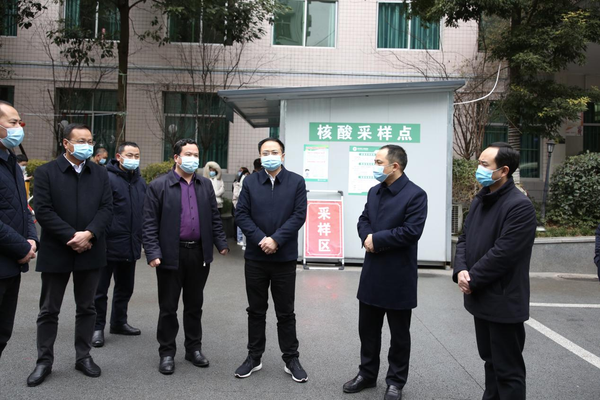 张世忠一行先后来到县人民医院、电商一条街、紫云工业园区、云峰镇三合村、武当综合市场、泰和大药房东城店、陵江镇东城社区疫情监测区、城郊中学、实验中学等地,通过实地查看、听取汇报、现场问询等方式,详细了解我县院感防控、居民核酸检测、农村疫情防控措施落实、民生服务保障及党员突击队等工作开展情况。