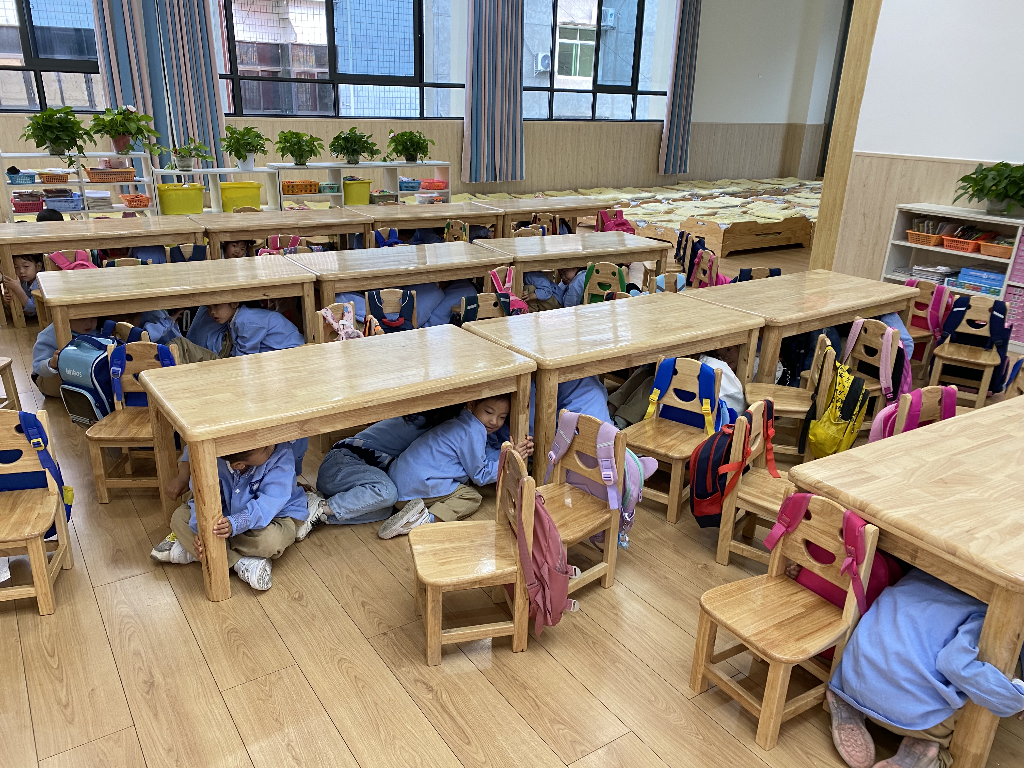 随着警报声响起,教师马上组织幼儿,迅速蜷曲身体、护住头部,就近躲避到桌下等安全角落,1分钟后,疏散声响起,教师组织幼儿排队,用手抱头、弯腰低身、沿预定路线,快速有序撤离教室。到达安全地点后,各班教师清点并上报幼儿人数,最后主持人对本次防震疏散演练的目的、过程中存在的问题进行了全面讲述与总结。整个演练活动用时共计2分30秒,演练过程紧张有序,有条不紊,增强了师生应对突发事故的处理能力。(李咏仪)