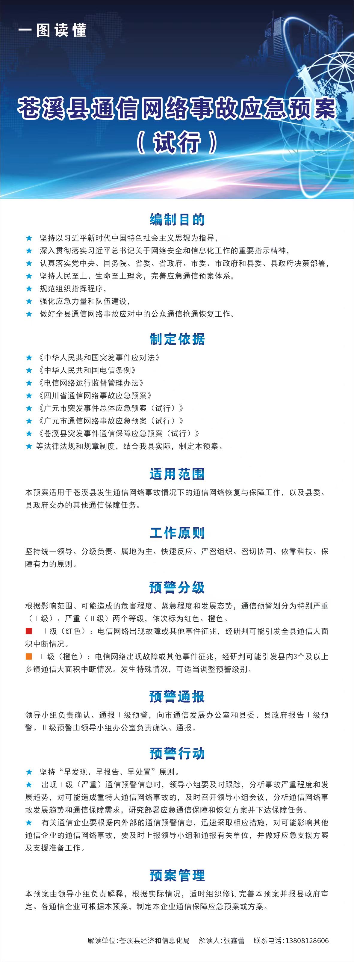 《苍溪县通信网络事故应急预案(试行)》的通知