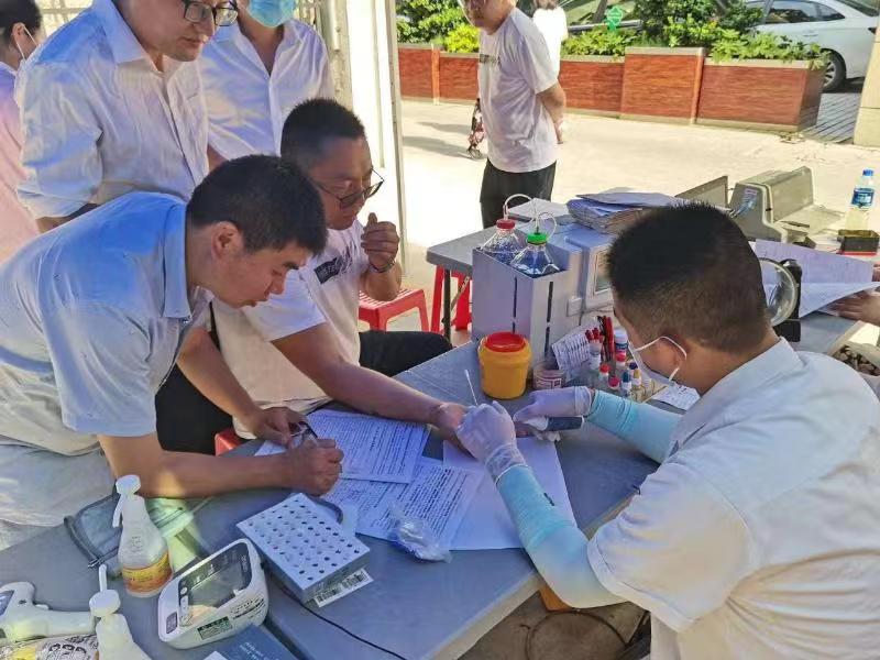 献血现场,100余名干部职工在志愿者的引导下,有序排队等候,积极配合医务人员进行信息登记、抽血检查、血液采集等工作,整个献血过程有条不紊,秩序井然。