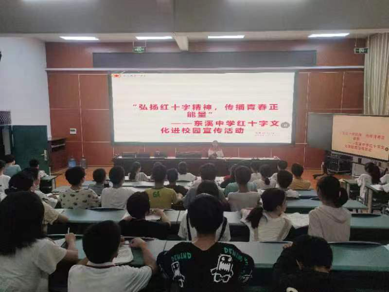 为广泛传播和弘扬红十字“人道、博爱、奉献”精神,践行社会主义核心价值观,把红十字精神融入到学校道德教育、安全教育、健康教育中。近日,苍溪县东溪初级中学校开展了以“弘扬红十字精神,传播青春正能量”为主题的红十字进校园系列活动。