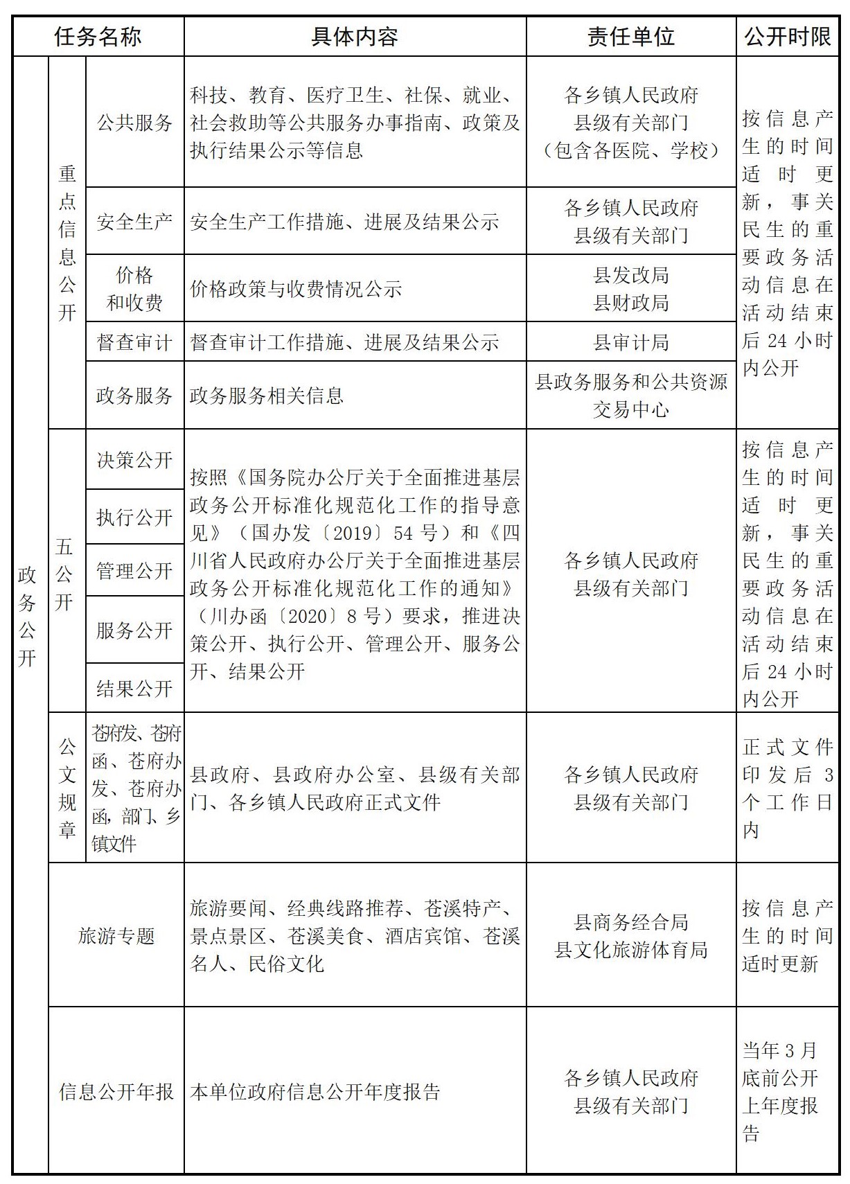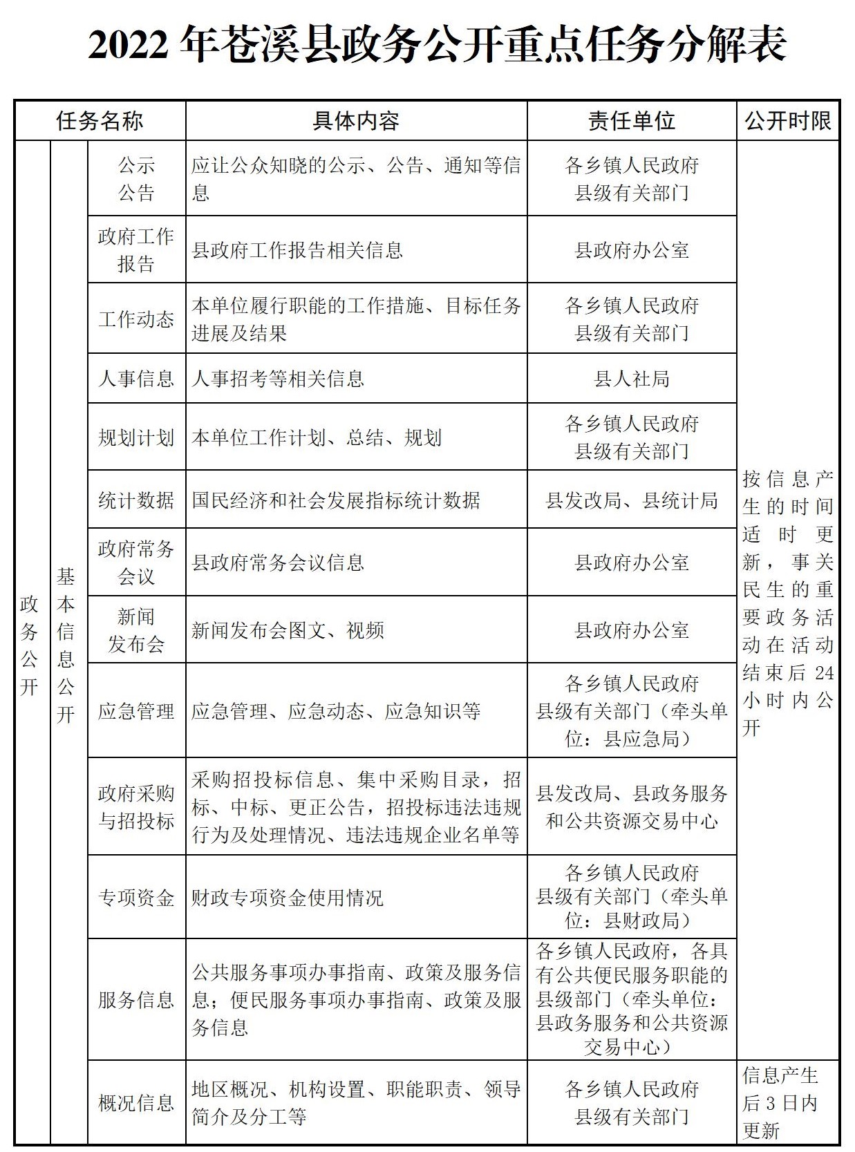 关于印发2022年苍溪县政务公开重点任务分解表的通知