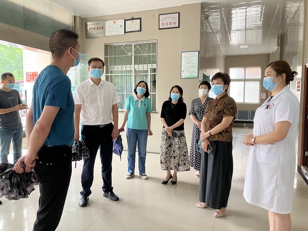 图为,吴桂华在永宁镇中心卫生院调研疫情防控工作