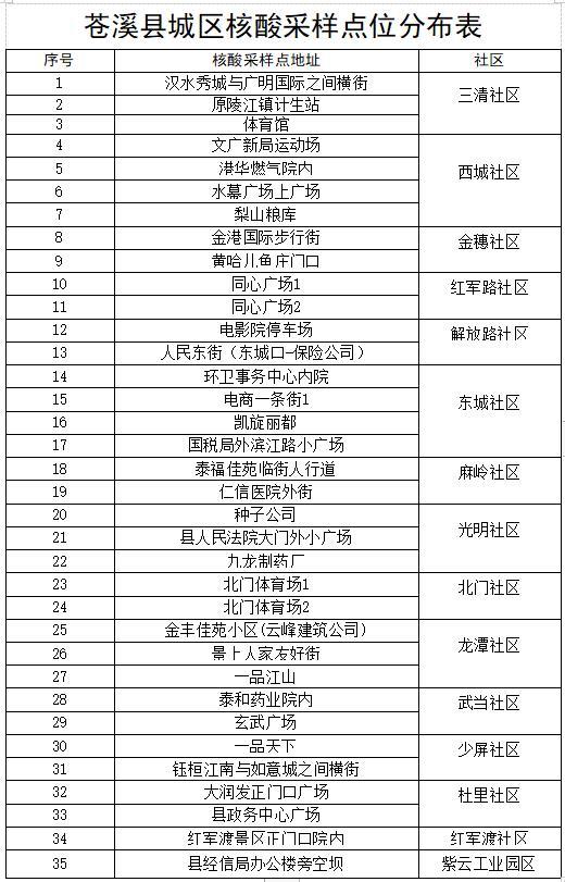 5.有发热、咳嗽、腹泻等症状的居民,请勿参加现场核酸检测,做好个人防护立即就近到医院发热门诊采样、就诊,并及时将核酸检测结果告知所在社区;目前正处于居家隔离、居家健康监测的人员请耐心等待工作人员上门采样,健康码为黄码人员请在做好个人防护前提下,不乘坐公共交通工具自行前往黄码人员定点检测医疗机构进行核酸检测(我县定点机构为县人民医院江南分院、苍溪县中医院)。