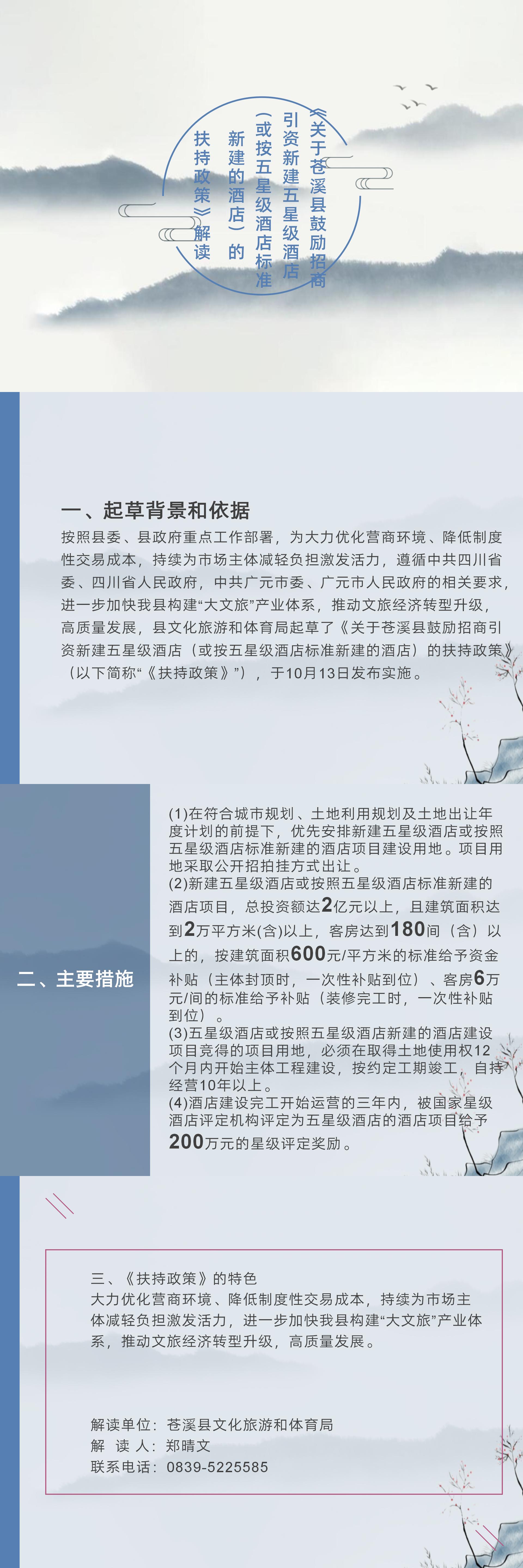 《关于苍溪县鼓励招商引资新建五星级酒店(或按五星级酒店标准新建的酒店)的扶持政策》解读