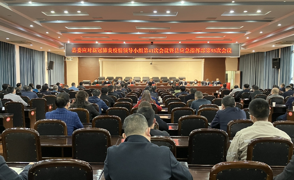 11月7日,县委书记张世忠主持召开县委应对新冠肺炎疫情领导小组第41次会议暨县应急指挥部第95次会议,贯彻落实近期国家联防联控、省、市疫情防控应急指挥部各项重要指示精神,分析研判我县当前疫情形势,研究部署疫情防控重点工作。县委副书记王小佳、刘学参加会议。