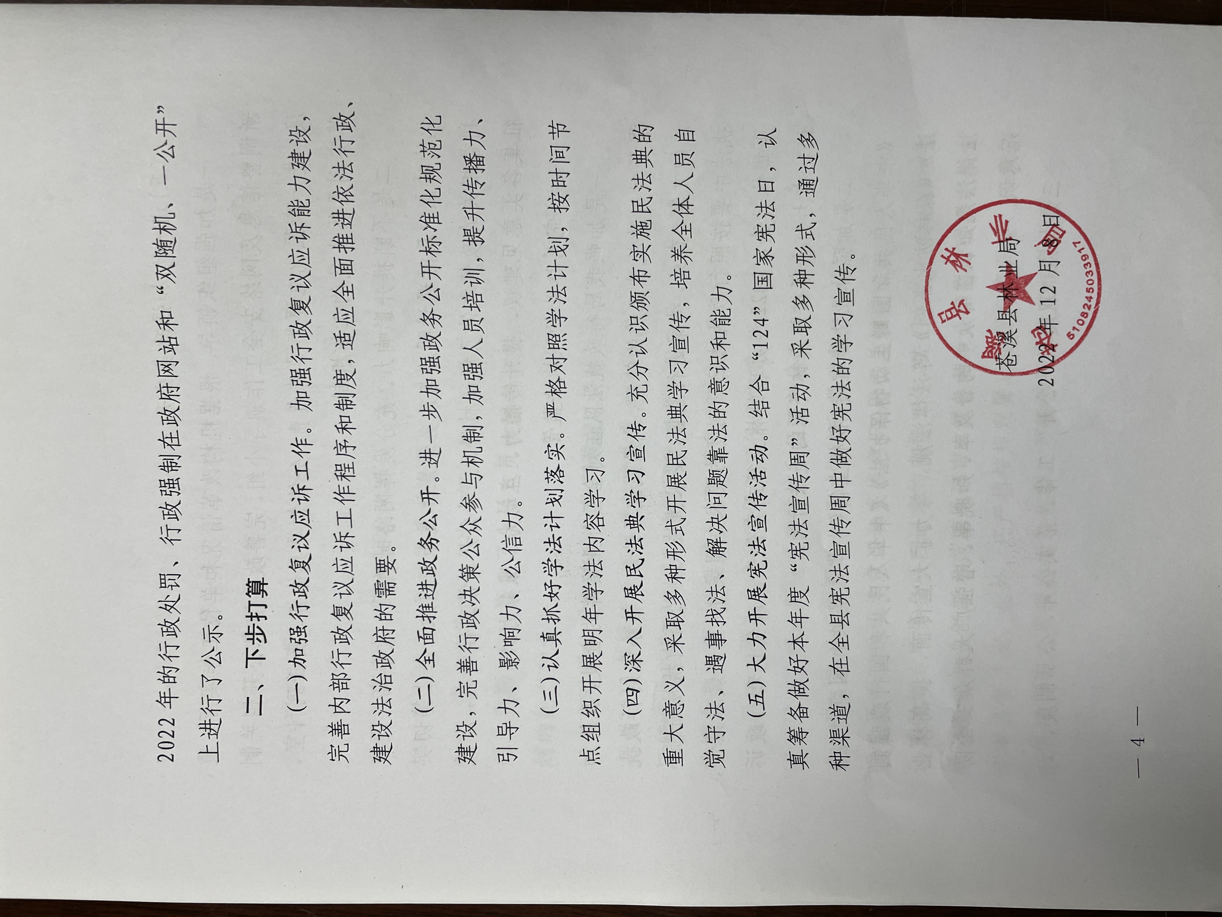 三是加强“双随机一公开”工作。落实公开、公示制度,对2022年的行政处罚、行政强制在政府网站和“双随机、一公开”上进行了公示。