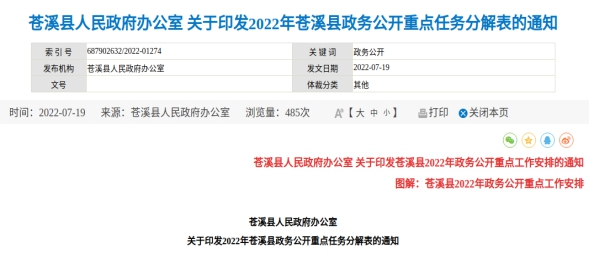 (三)政府信息管理情况。一是印发《苍溪县人民政府办公室关于印发2022年苍溪县政务公开重点任务分解表的通知》,分解目标任务,强化公开重点,明确责任主体。二是严格执行信息发布“三审”制度,确保上网信息内容合法、准确、规范。三是及时更新、完善26个试点领域基层政务公开标准目录及政府信息主动公开基本目录,确保政府信息公开标准化规范化。