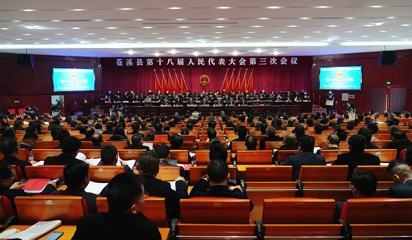 上午9时整,张世忠宣布:苍溪县第十八届人民代表大会第三次会议开幕。全体起立!奏唱中华人民共和国国歌!