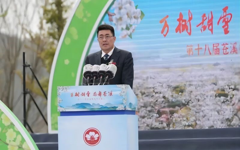 张世忠在致辞中代表县四套班子和75万梨乡人民,向各位领导、各位来宾,以及线上线下参加本次活动的朋友们表示最热烈的欢迎;向长期以来关心支持苍溪发展的社会各界朋友表示最衷心的感谢。他说,“树浓夹岸、苍翠成溪”,苍溪因山而兴、因水而名,一幅山水画,绘就绿色生态高颜值;“万树甜雪、花舞苍溪”,苍溪因花而舞、因果而甜,一首田园诗,吟诵产业兴旺共富路;“红色苍溪、醉美梨乡”,苍溪因绿而美、因红而兴,一支进行曲,奏响砥砺奋进最强音。如今的苍溪,红军渡、梨博园享誉全国,梨仙湖—花家坝—扑船山文旅新引擎加快锻造,苍溪文旅未来可期;我们将加速推进资源优势向产业优势转变,加快建设川内天然气综合利用基地、山区农业现代化先行示范县、川东北商贸物流和数字经济新高地,走出一条具有苍溪特色的山区产业强县之路;我们将始终不忘初心、牢记使命、砥砺前行,持续擦亮“绿色家园、产业强县、红色苍溪”金字招牌,努力打造践行新发展理念的山水园林县城、秦巴山区产业引领老区振兴发展示范县、新时代伟大红军精神传承引领地,奋力谱写苍溪现代化建设新篇章。同时,真诚希望游客朋友们能够尽情纵享嘉陵山水、领略秀美苍溪,留下美好而难忘的回忆;真诚欢迎广大客商前来考察调研、投资兴业,在充满活力的建设浪潮中寻得发展先机。