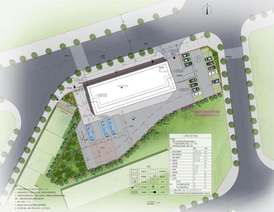 本次报送的设计方案由四川慧源鹏程设计有限公司设计,经县国土空间规划委员会2023年第2次会议审议通过。主要技术经济指标为:规划用地面积约3186㎡,容积率0.51,建筑密度18.9%,绿地率14%,建筑高度14.85m,建筑层数3层。项目总建筑面积1634.20㎡,计容建筑面积1634.20㎡。该项目主要以白米色真石漆为主,辅以浅灰色及浅咖啡色,色彩搭配简洁和谐,整个建筑富有层次感和现代感。