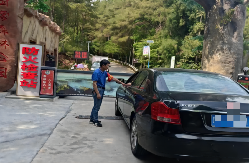 “你好,现在是森林防火期,你们即将进入森林公园,请扫入山码并将背包通过安检,有打火机的请放到火源管控箱,进入林区不能使用火源……”三溪口国家森林公园防火检查卡点值守人员正在对上山人员进行火源检查,叮嘱防火注意事项。据了解,该县在三溪口及九龙山两个重点林区入口建设森林防火检查站,配备安检X光机、火源探测仪、车辆升降闸门等设备,从严落实进山人员和车辆信息登记,确保火源不进山入林。