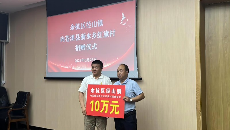会上,与会人员观看了苍溪形象宣传片,杭州径缘新型墙体材料有限公司与浙水乡红旗村签订了企村结对协议,余杭区径山镇现场向浙水乡红旗村捐赠10万元。