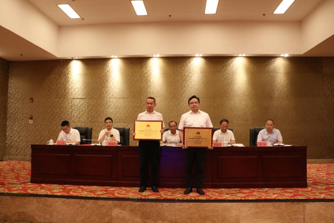 会议现场为获批筹建的2个国家级和5个省级地理标志保护示范区颁发了牌匾,苍溪县人民政府、合江县人民政府、眉山市市场监管局、绵阳市农业农村局、都江堰猕猴桃协会和平昌县巴山天香花椒有限公司等6个单位就运用地理标志助力乡村振兴进行了经验交流发言。