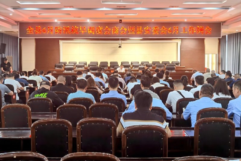 6月19日,全县6月防汛抗旱调度会商会暨县安委会6月工作例会召开。