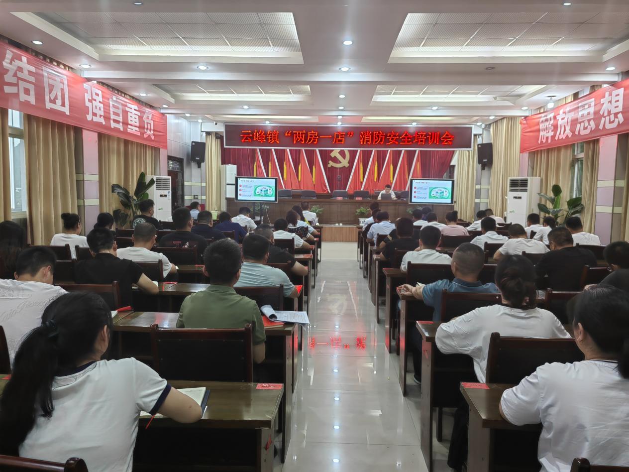 为进一步加强乡镇消防安全管理,有效提高群众防火安全意识,全面增强农村居民消防安全素质和应对突发火灾事故能力。近日,云峰镇组织全体镇干部、镇属单位负责人、村常职干部参加“两房一店”消防安全培训会。
