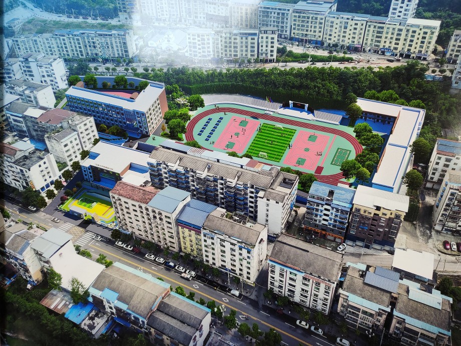 本次报送的设计方案由四川慧源鹏程工程设计有限公司设计,经县国土空间规划专业委员会2023年第5次会议审查通过。根据报送方案,本次工程共有四个子项目。一是幼儿园综合楼改建,项目位于A地块,改造范围为原建筑1-3F,其中一层为教师办公室,二、三层作为幼儿园活动、就寝使用,改造建筑面积2193.55㎡,规划满足4个幼儿班使用;二是新增小学部大门及设备用房,项目位于B地块,新建建筑建筑面积共317.90㎡,均为单层建筑。其中新建大门门卫室建筑面积28.63㎡,新建大门架空层建筑面积45.44㎡,新建设备用房建筑面积233.64㎡,室外垃圾房建筑面积10.19㎡。大门的色调以浅色调为主,点缀灰白色石材栏板;三是室外活动场地面层改造,改造范围包含整个校园内室外活动场地,改造总面积约7900㎡,其中幼儿园室外改造面积675.12㎡,小学部室外改造面积7221.75㎡;四是其他附属设施,包含小学部西北侧增设消防车行道、运动场舞台背景墙改造及周边维护设施等附属工程。