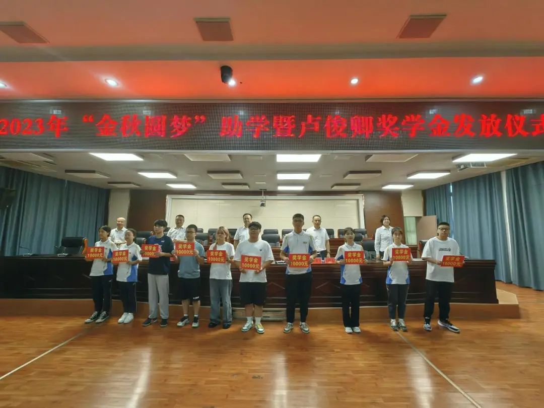 活动中,向贫困学生发放了金秋圆梦助学金,并为2023年高考获得优异成绩的学生颁发了卢俊卿奖学金,助力家庭困难、品学兼优的学子圆求学深造之梦,受助学生代表作了发言。