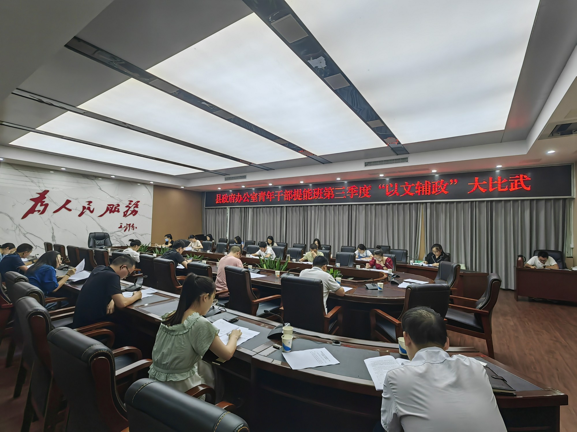 金秋九月桂花香,正是青年奋进时。为认真贯彻落实中央和省市县委关于加强年轻干部队伍建设的部署要求和《广元市实施“青苗守护”计划六项制度》,不断优化干部队伍知识结构、专业结构和能力结构,提升办公室青年干部的理论水平、文字功底和思辨能力,9月20日下午,县政府办公室青年干部提能班第三季度“以文辅政”大比武活动在县政府常务会议室如期开展。
