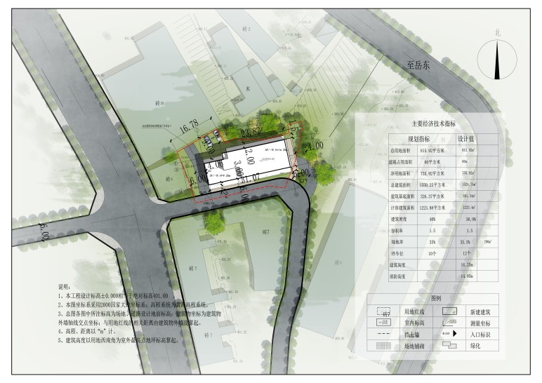 本次的设计方案由中科旭日建设集团有限公司报送,经县国土空间规划专业委员会2023年第7次会议审查通过。主要技术经济指标为:规划建设用地面积约815.92㎡(合1.22亩),容积率1.5,建筑密度36.9%,绿地率35.5%,机动车停车位共12个,其中地下9个,地上3个。总建筑面积为1524.74㎡,其中地上建筑面积为1223.4㎡,地下建筑面积为301.34㎡,建筑高度16.25m,地上4层,地下1层。其中地下室为设备用房和集中车库,建筑面积301.34㎡;一层为油料收购门市部,建筑面积301.34㎡;二层为油料收购用房,建筑面积365.90㎡;三层为油料收购用房,建筑面积278.08㎡;四层为油料收购用房,建筑面积278.08㎡。该方案外立面色彩及材质主要采用银灰色外墙真石漆和咖啡色外墙真石漆。