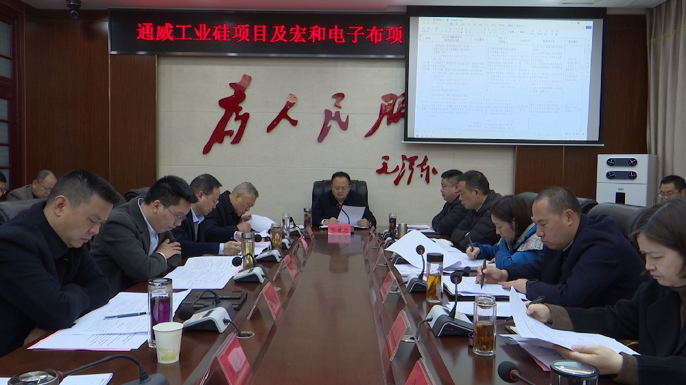 1月2日,我县召开通威工业硅项目及宏和电子布项目指挥部调度会。市人民政府副市长、县委书记张世忠出席会议并讲话。县委副书记、县长任云,县人大常委会主任冯明参加会议。