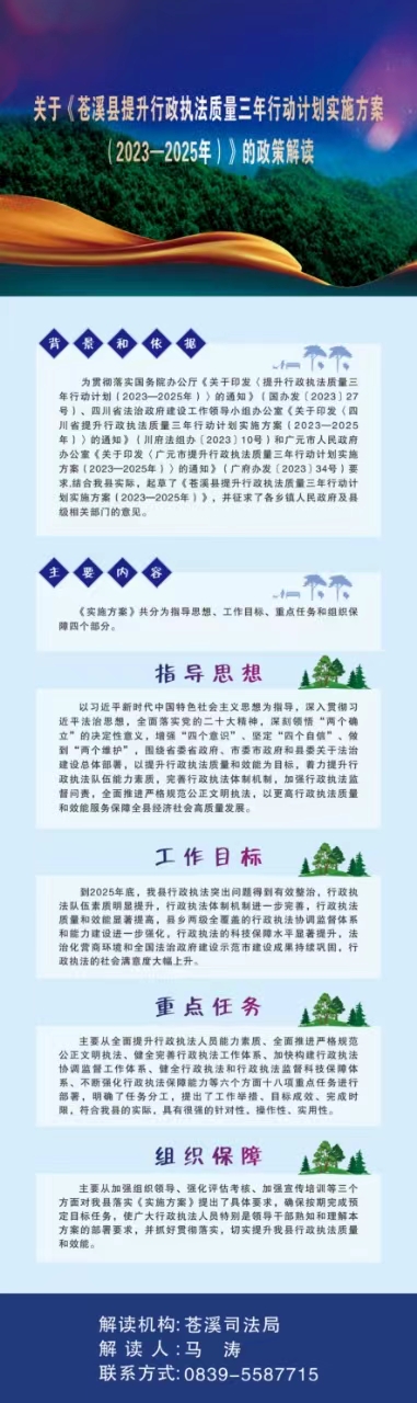 关于《苍溪县提升行政执法质量三年行动计划实施方案(2023—2025年)》的政策解读