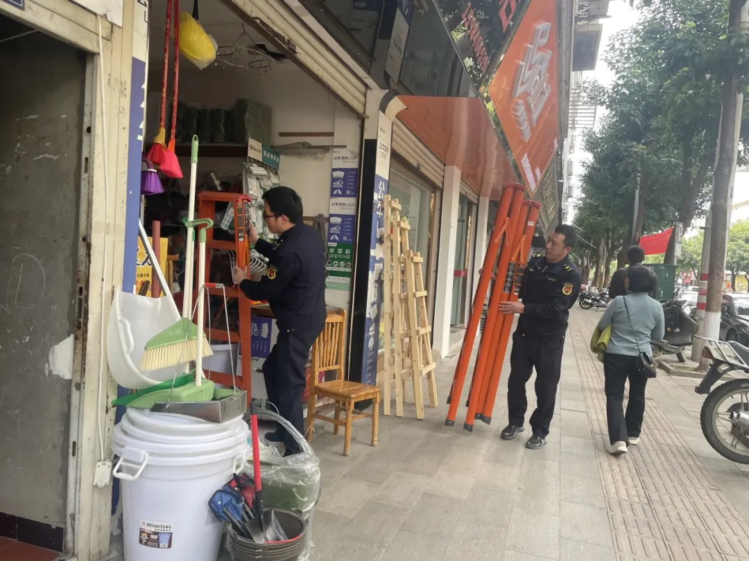 商铺摊位是市民购买物资的重要场所,更是展示城市文明形象的重要组成部分。在陵江镇杜里社区,县综合行政执法局执法人员每天不定时对重点区域占路经营、跨门经营、违法小广告、不文明养犬等不文明行为进行巡查和整治,确保商铺摊位摆放规范、有序经营。