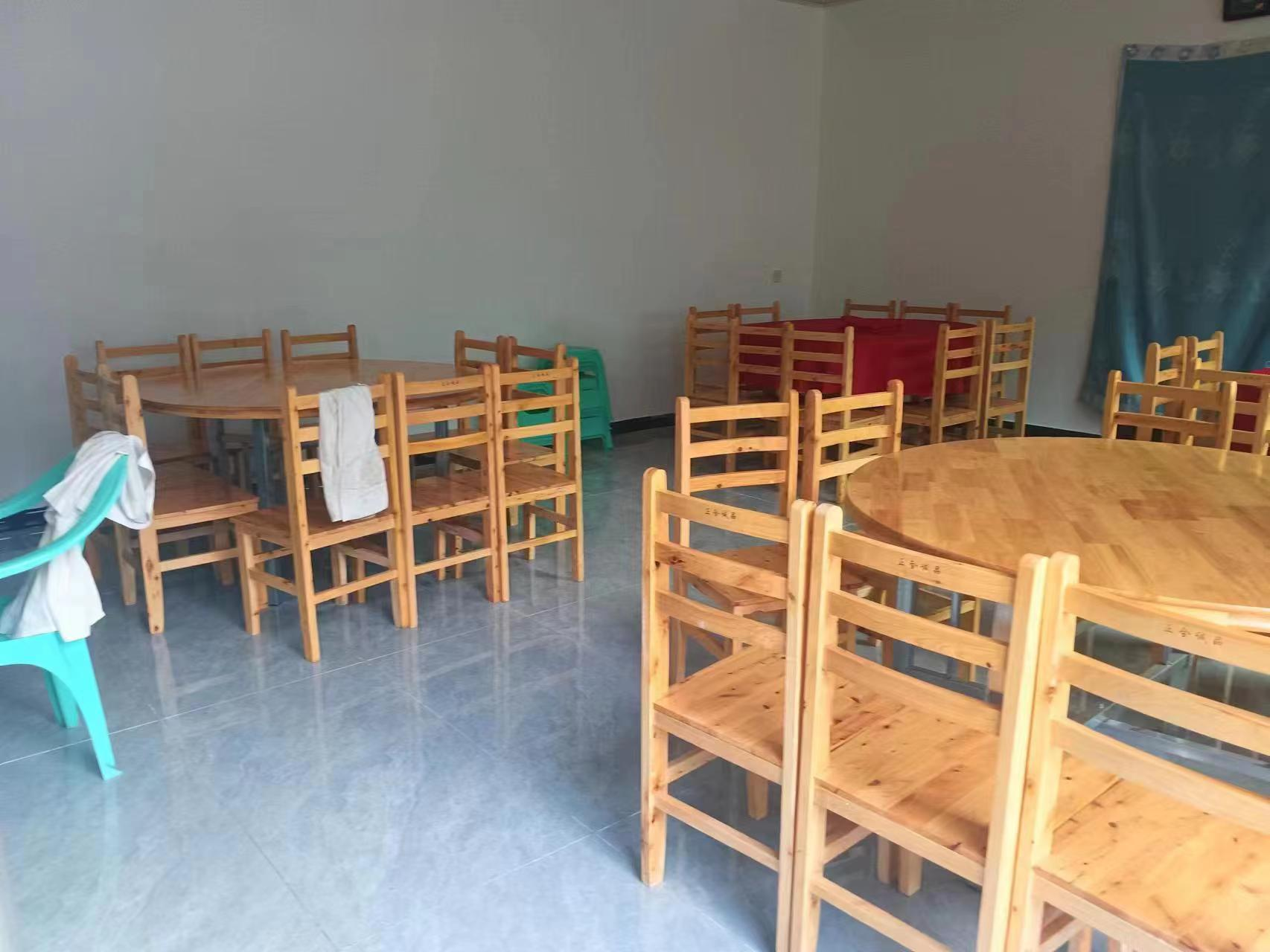 图5:苍溪县殡仪馆维修改造后伙食团地砖铺设、新购餐桌椅图