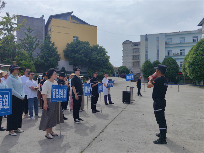 活动中,苍溪红十字救援大队模拟突发地震,组织医护人员、病人及家属紧急有序撤离医院大楼,迅速跑向应急避难点。搜救组成员进入医院各楼层,查看是否有未及时撤离的人员,及时进行搜救并组织撤离,确保人民群众生命和财产安全。随后,救援大队专业讲师采用理论与实践相结合的教学方法,耐心讲解心肺复苏等急救知识,认真为参演人员示范了心肺复苏、AED操作、干粉灭火器的使用,宣讲了居家水、电、气等方面注意事项和应急处置方法。