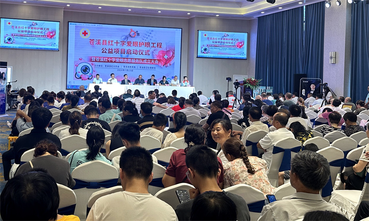 为深入贯彻落实《教育部、国家卫健委等八部门综合防控儿童青少年近视实施方案》《中国红十字会总会、教育部关于进一步加强和改进新时代学校红十字工作的通知》精神,苍溪县红十字会、县教育局、县卫生健康局决定动员全县红十字系统和社会各方力量,开展“红十字爱眼护眼工程”,降低近视发病率,保护青少年眼健康。近日,苍溪县在一品天下大酒店会议厅隆重举行了苍溪县“红十字爱眼护眼工程”公益项目启动仪式和苍溪红十字爱眼志愿服务队成立大会。