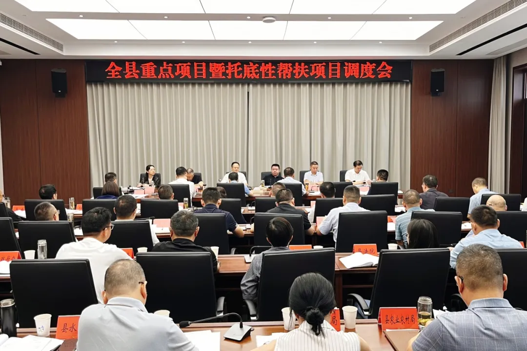 7月31日,全县重点项目暨托底性帮扶项目调度会召开。市人民政府副市长、县委书记张世忠出席会议并讲话,县委副书记、县长任云主持会议,县人大常委会主任冯明,县政协主席李汀,县委副书记赵丹、郭金桥参加会议。