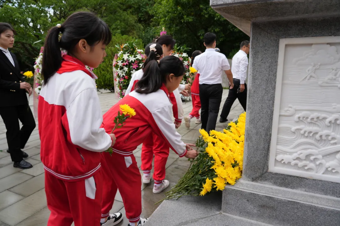 全体人员列队绕行瞻仰烈士墓,献上手中鲜花,向人民英雄表达深切缅怀和崇高敬意,共同铭记先烈们勇于担当、敢于献身的英勇事迹,从革命先烈的斗争精神中汲取前进力量。