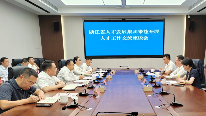10月18日,浙江省人才发展集团董事长陈德意一行来苍开展人才工作交流活动并举行座谈会。市人民政府副市长、县委书记张世忠出席座谈会并讲话,县委副书记赵丹参加活动。