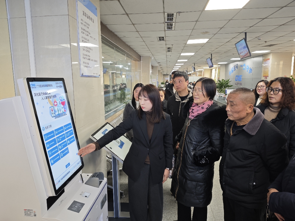 代表们首先参观了三楼医保服务大厅,医保工作人员详细介绍了医保大厅每个窗口的业务经办范围和经办流程,包括费用报销、异地就医备案及智能终端操作等,让代表们对医保大厅的日常运作有了清晰的认识。