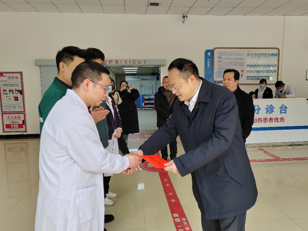 在县人民医院,张世忠向急诊科医务人员致以节日的问候,赞扬他们的辛勤工作和无私奉献。他说,每逢重大节日,大家都承担着比平时更大的工作压力,叮嘱他们要在恪尽职守的同时,照顾好自己身体,以高度的使命感、责任感,全力做好节日期间广大群众的医疗保障服务,确保大家度过一个平安祥和的新春佳节。