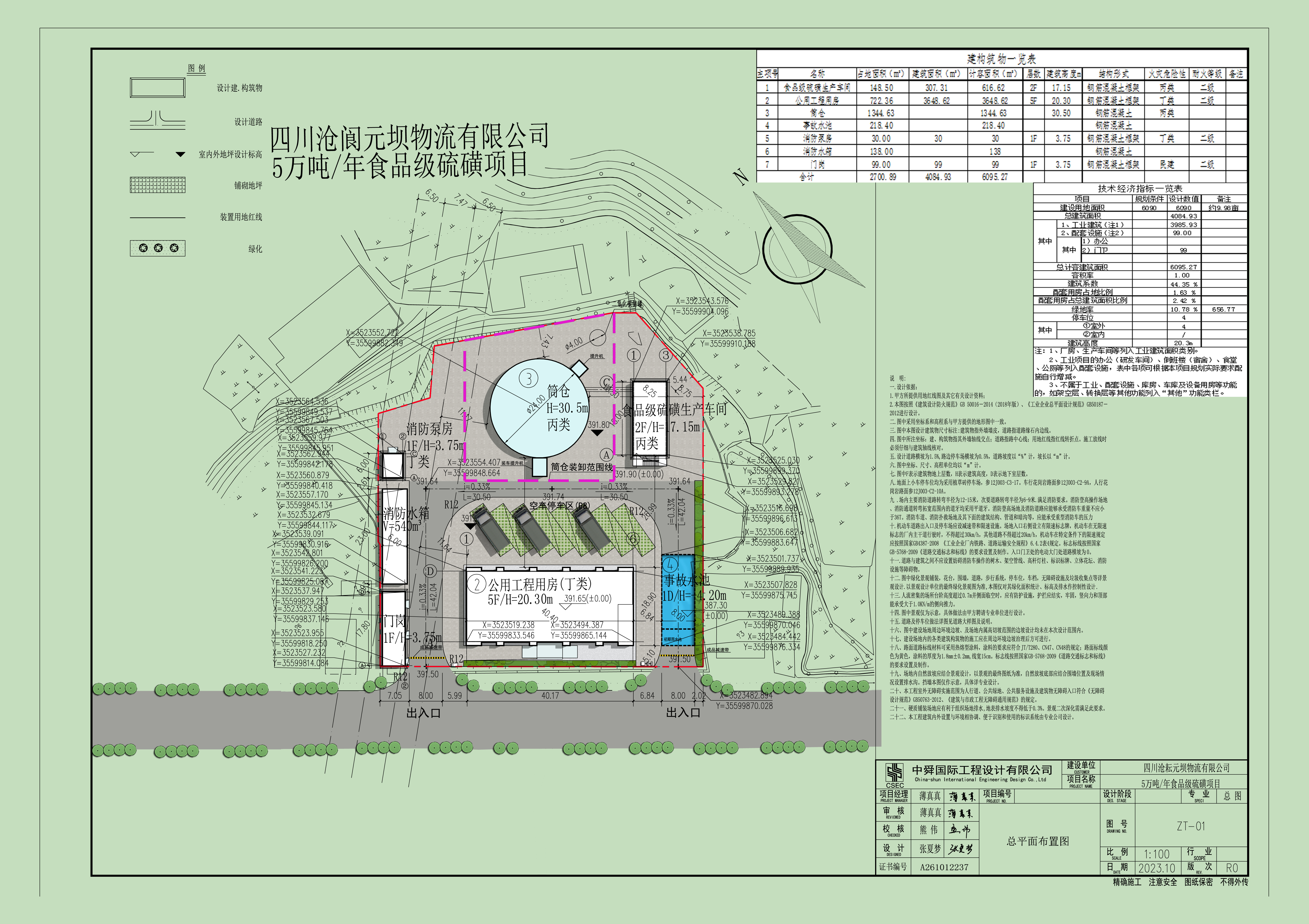 本次的设计方案由陕西宇昌工业设计有限公司报送,经县国土空间规划专业委员会2024年第16次会议审议通过。方案建筑布局由1栋食品级硫磺生产车间、1栋公用工程用房、1栋筒仓、1个事故水池、1栋消防泵房、1栋消防水箱、1栋杂物间组成。该方案建筑外立面色彩及材质主要采用普通外墙涂料。