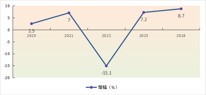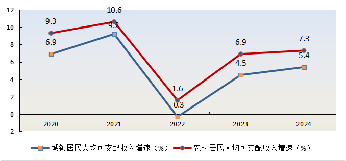 图8 2020—2024年全县居民人均可支配收入增长速度