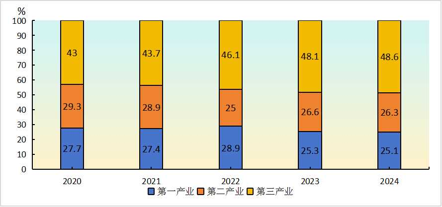 图2 2020—2024年三次产业增加值占地区生产总值比重