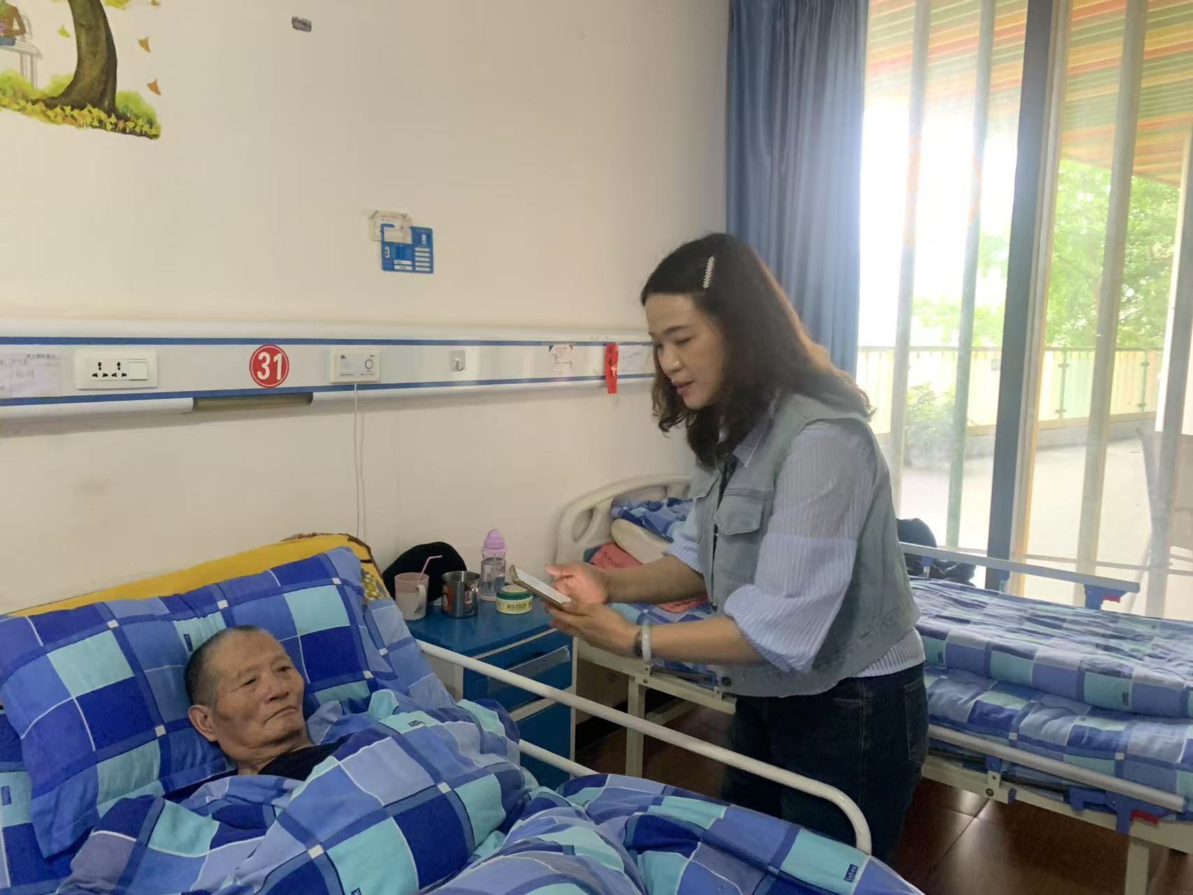 苍溪县康复医院有很多老年人大多行动不便,大部分都不会使用智能手机,无法做养老保险生存认证,为确保能够按时领取到养老金,县人社局工作人员主动上门为老人做生存认证服务。在上门认证的同时,工作人员还认真解答老人们提出的问题,向老人们宣传养老保险待遇资格认证的重要性,积极引导其子女用手机下载“四川人社”app,指导认证相关操作步骤,帮助老人们进行信息采集,确保每位老人及其家属都能知晓相关事宜。