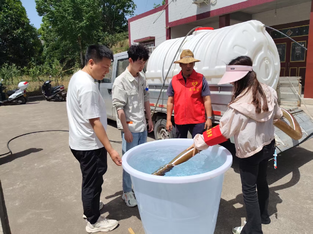干群齐心发力,上门“送水解渴”。将保障人畜饮水安全放在抗旱工作的首要位置,由班子成员牵头,镇干部包村,全员下沉摸清全镇干旱实情,在建立缺水台账的同时,充分发挥基层党组织“毛细血管”作用,由镇统一调配组织7个行政村(社区)成立“党员送水分队”,通过机械抽水、车辆运水、人工运水等方式,累计为85户群众送去生活用水50余吨,确保了人畜饮水安全。