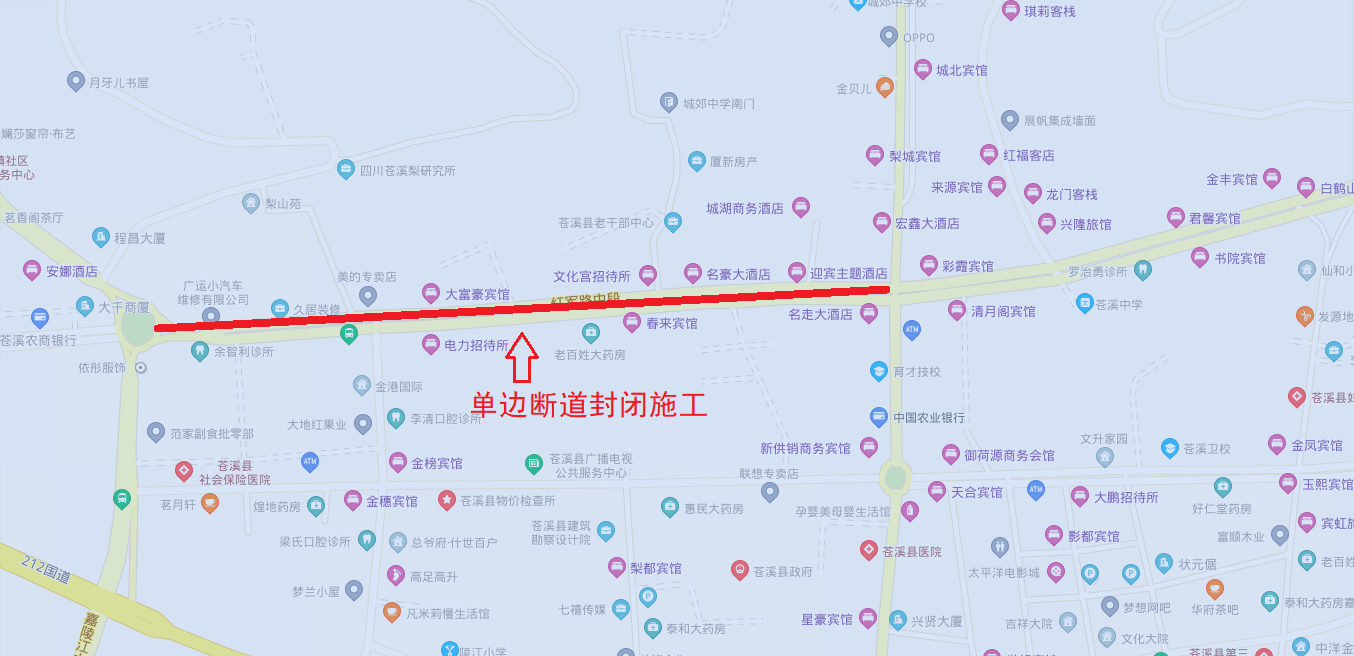 一、施工范围:红军路金三角至汽车站处(该路段采取单边断道封闭施工)。