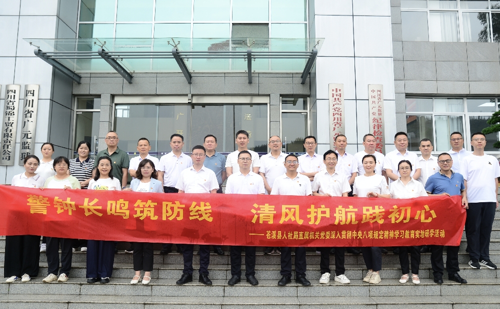 为庆祝中国共产党成立104周年,进一步推动深入贯彻中央八项规定精神学习教育走深走实,强化党员干部廉洁自律意识,6月24日,苍溪县人社局组织党员干部前往广元监狱、李榕家风馆开展“警钟长鸣筑防线﹒清风护航践初心”主题党日暨现场教学活动,通过“沉浸式”警示教育与“红色课堂”相结合的方式,集体接受了一次深刻的廉政教育洗礼。