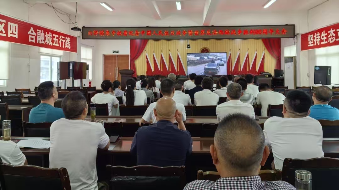 陵江镇集中观看纪念中国人民抗日战争暨世界反法西斯战争胜利80周年大会实况直播。