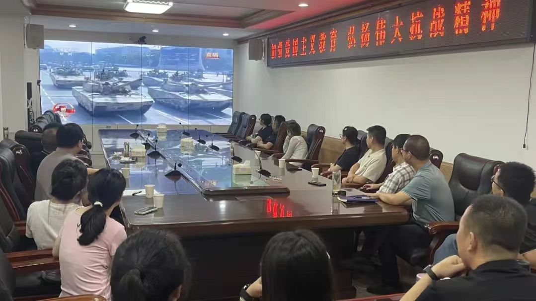 县住建局集中观看纪念中国人民抗日战争暨世界反法西斯战争胜利80周年大会实况直播。