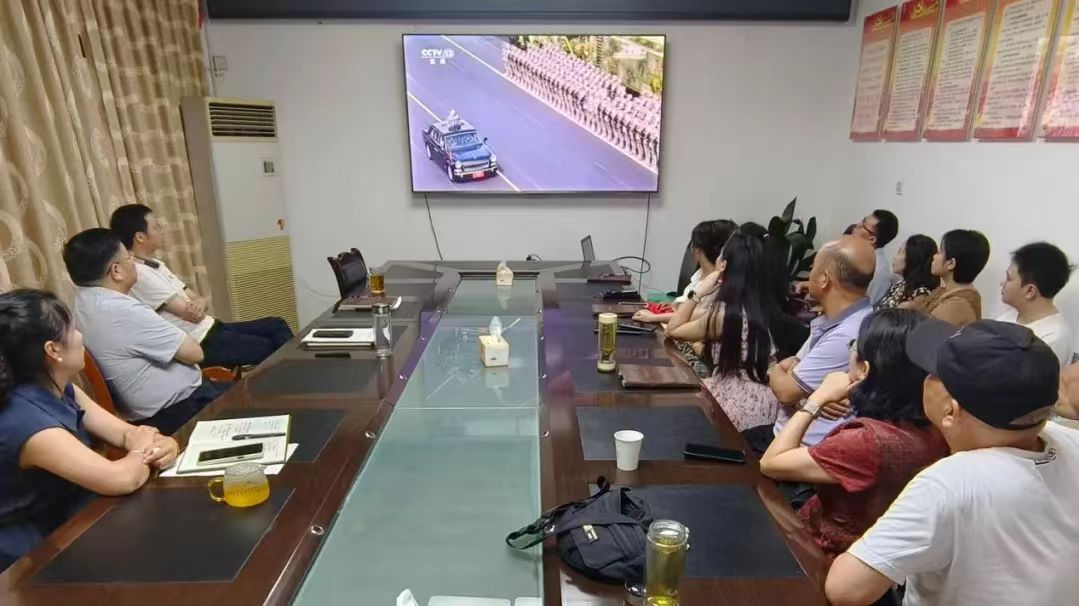 县委统战部集中观看纪念中国人民抗日战争暨世界反法西斯战争胜利80周年大会实况直播。