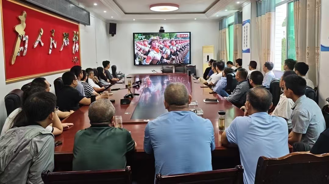 县红军渡西武当山景区事务中心集中观看纪念中国人民抗日战争暨世界反法西斯战争胜利80周年大会实况直播。