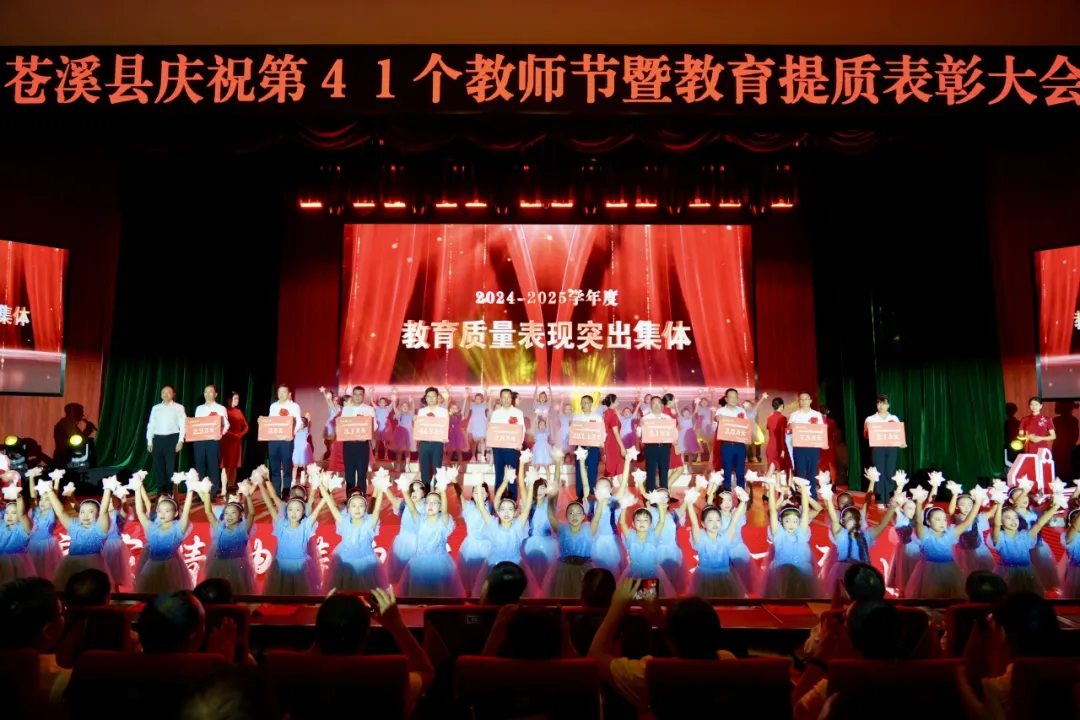 9月10日,苍溪县庆祝第41个教师节暨教育提质表彰大会举行。市人民政府副市长、县委书记张世忠出席会议并讲话,县人大常委会主任李汀,县政协主席谢龙飞,县委副书记赵丹、梁赛出席会议。