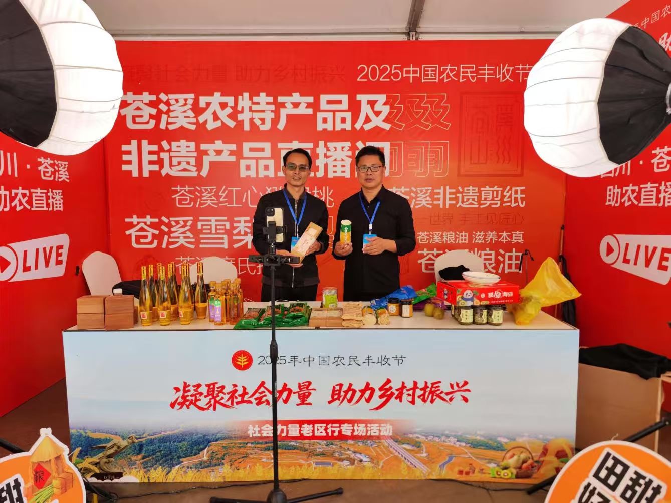 麦浪翻金,网浪翻红。2025年中国农民丰收节“凝聚社会力量 助力乡村振兴——社会力量老区行”专场活动在苍溪县盛大启幕。一群来自田间的“新主角”站上了聚光灯C位,在苍溪县人社局的精心组织下,新农人直播带货和非遗技艺展销火力全开,鲜活地呈现了革命老区乡村振兴的丰硕成果,勾勒出一幅“城乡深度融合、产业蓬勃兴旺、人才充分赋能”的现代化全新图景,生动演绎了一场从“泥土芬芳”到“流量芬芳”的乡村振兴田野秀。